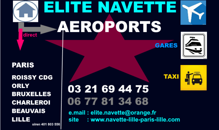 Navette-Lille-Paris-Lille ELITE NAVETTE AEROPORTS www.navette-lille-paris-lille.com